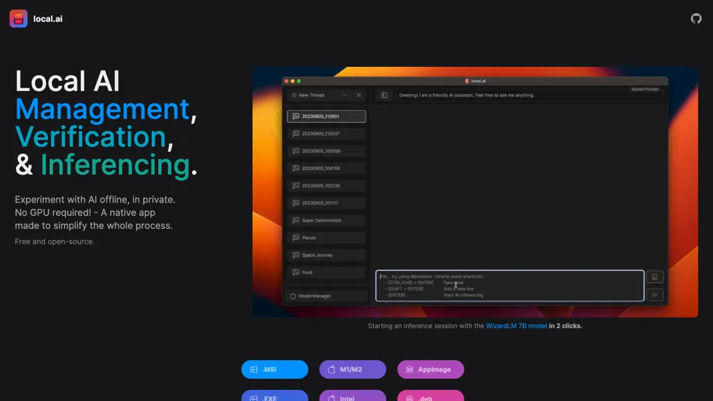 Local AI Playground by Local.ai is the go-to tool for AI management, verification, and inferencing needs.This native app simplifies the entire process, allowing users to experiment with AI offline and in private.