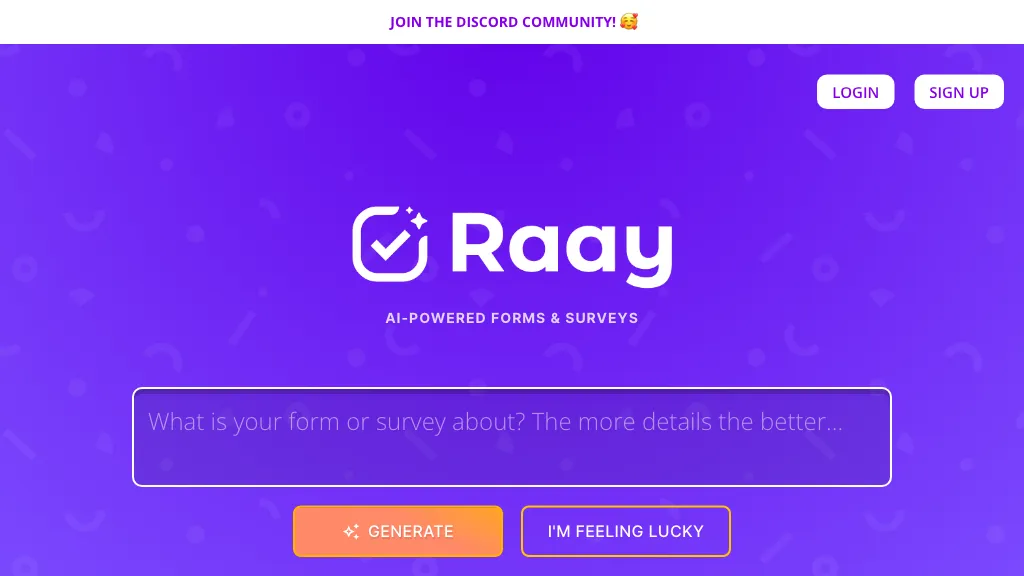 Raay is an AI tool that allows users to create, share, and run surveys and forms.With Raay, users can quickly generate actionable insights from their data, without spending long hours on questionnaire design or data crunching.