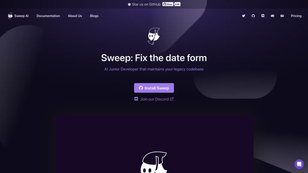 Sweep AI, Sweep is an AI tool designed to assist developers in managing and improving their codebase efficiently. By automating tasks such as writing unit tests, fixing bugs, and refactoring code, Sweep helps streamline the development process. With features like legacy code maintenance and tech debt cleanup, Sweep enables developers to focus on more critical aspects of their work. Trusted by engineers for its ability to generate repository-level commands, Sweep significantly reduces the time spent on mundane tasks like documentation and testing. By making code more modular and automating repetitive tasks, Sweep proves to be a valuable companion for junior developers and seasoned professionals alike.
